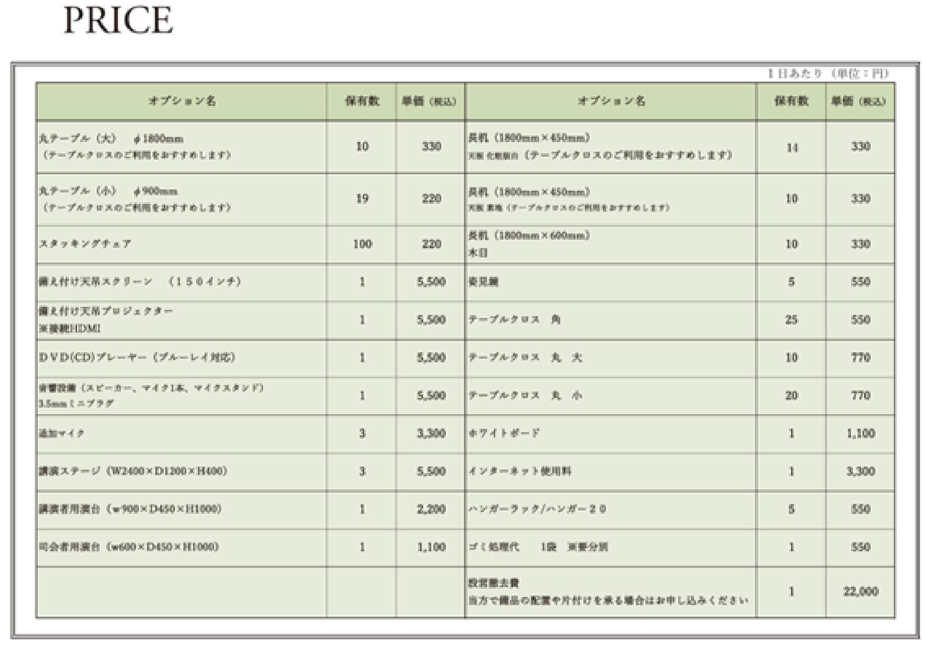 【備品リスト表&価格表】