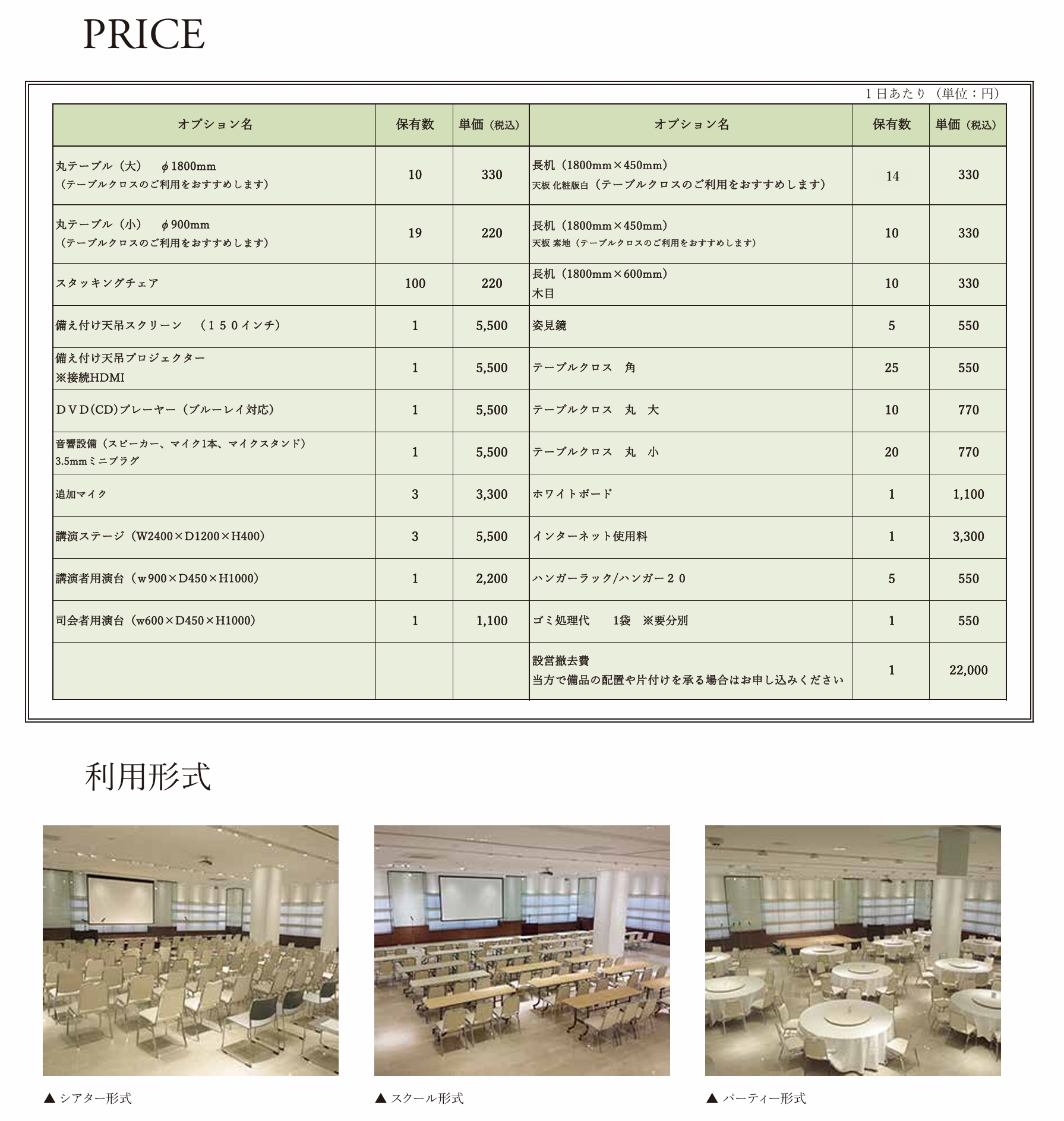 *会場の料金に販売手数料(旅行会社)は、一切付きません。